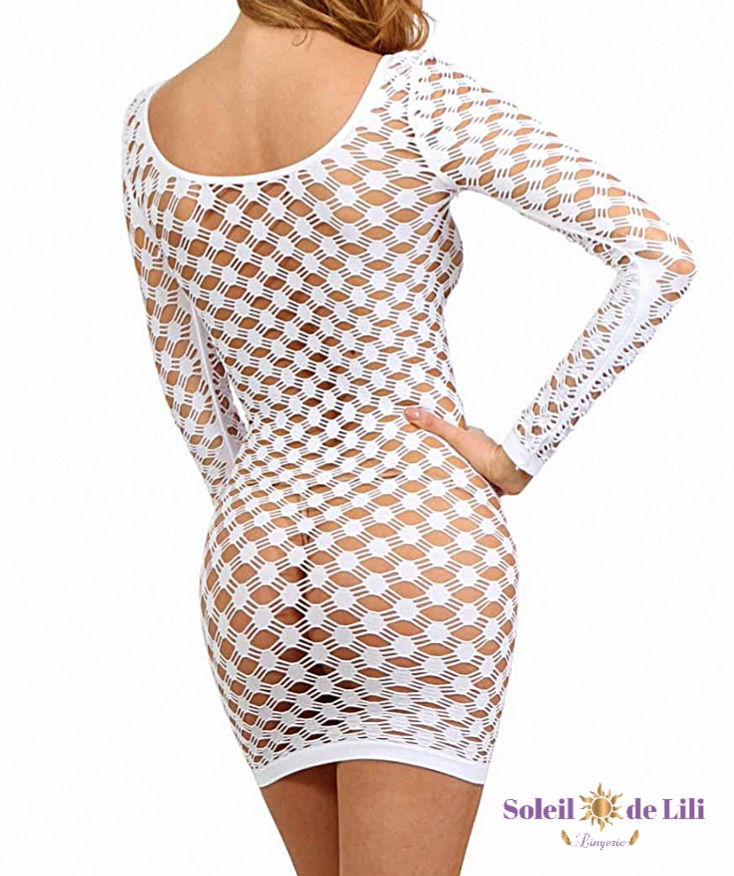 Tenue sexy sensuelle, résille, manches longues épousant parfaitement et avec délicatesse les courbes de votre silhouette avec un col mettant en valeur votre décolleté.