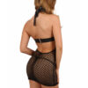 Robe stretch dos nu. Empiècements wetlook devant et poitrine. Empiècements filet cotés et dos. Ajustement col laçage dos.